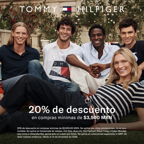 No aplica en temporada de rebajas, Buen fin, Hot Fashion, Black friday y Cyber Monday. No acumulable con otras promociones. No aplica en Buen Fin ni en temporada de Rebajas. Uso único e intransferible, aplica solo un cupón por ticket. No aplica en mercancía de punto de precio, reserva, gwp, licencias y colecciones especiales. Se debe mostrar evidencia. Válido al 31 de diciembre de 2026.